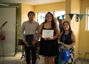Primer lugar: Katherinne Ramírez, quien muy emocionada recibió el premio y destacó la importancia del trabajo que realiza la comuna en torno a la salud mental.